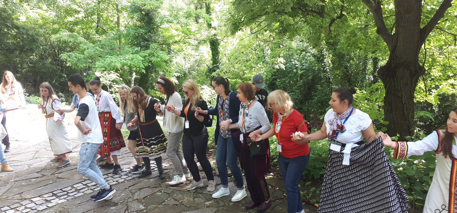 14.6.2021 Meeting with Bratia Grimm school, online meeting with Spanish. Visiting Madara, dancing traditional dances and singing